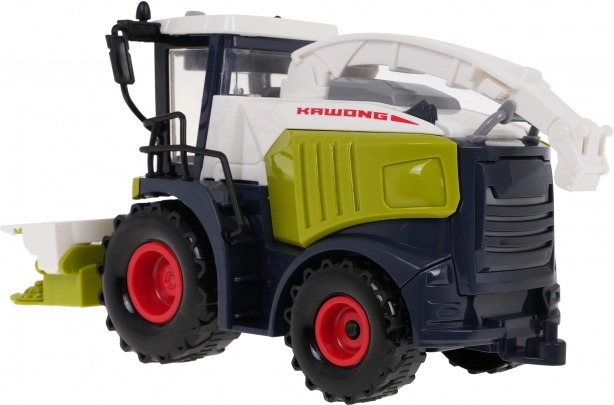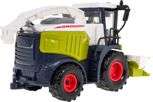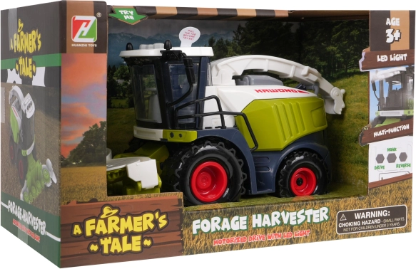 Interaktív kombájn hang- és fényfunkciókkal, valamint mozgó részekkel, 3 éves kortól kis mezőgazdaság-rajongóknak. A kombájnt az ilyen típusú gépekre jellemző színekben készítették, fel van szerelve vágószerkezettel és gabonafelhordóval. A gépnek futófelületes, forgó kerekei és „üvegezett” kabinja van. A kombájn motor-, duda- és riasztóhangokat ad ki, a tetőn hangpanel található gombokkal. A hangokat villogó LED fények kísérik a kabin felső részén. A kombájn a súrlódásos meghajtásnak köszönhetően egyenletesen halad a talajon. A játék 3 x 1,5 V AG13 elemmel működik, az elemek a csomag részét képezik. Specifikáció: .- a kombájn előre és hátra halad, .- nagy kerekek elülső súrlódásos meghajtással, .- hangfunkciók: motorjárás, duda, figyelmeztető jelzések, .- fényfunkciók: működő első LED lámpák, .- a vágószerkezet emelése és süllyesztése (kézi), .- az oldalsó védőelemek lehajtása (kézi), .- első oldali forgó görgők (kézi), .- a hátsó kerekek feletti oldalsó fedelek emelése és süllyesztése (kézi), .- emelhető és 360 fokban forgatható gabona-felhordó (kézi), .- emelhető és 360 fokban forgatható gabona-kifolyócső a felhordón (kézi), .- vonóhorog a kombájn hátulján. . |