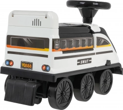 Az interaktív, mozdony formájú tolójármű egyedi játékélményt nyújt. Kiváló minőségű, tartós és nem mérgező műanyagból készült. A jármű hat keréken közlekedik, melyek közül az első kettő forgatható. Az ülés alatt egy kihajtható rendőrségi park található rámpákkal, mozgó lifttel, nyitható sorompóval, emelővel és forgatható tárcsával.