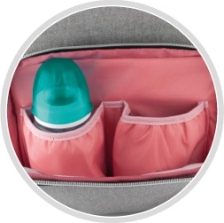 Az integrált termo zseb tovább tartja az italt a kívánt hőmérsékleten, a pántok pedig megkönnyítik a hátizsák rögzítését a babakocsira.