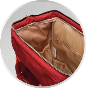 - Remek rendszerezés: fő rekesz, vízálló zseb, rejtett iratzseb, oldalzseb törlőkendőknek.