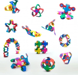 A négylevelű lóhere alakú univerzális elemek sík és térbeli modellekké kapcsolódnak. Építsen hidat, karkötőt, labdát vagy szélforgót, és változtassa a formákat pillanatok alatt.