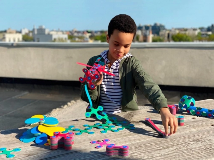 Az egyedülálló, szabadalmaztatott rendszer 360°-os elfordulást és 24 pozícióban való rögzítést tesz lehetővé a stabil szerkezetekért. Az elemek vízállók, könnyűek és biztonságosak (BPA- és ftalátmentesek), alkalmasak kreatív játékra, a koncentráció fejlesztésére és STEAM tanulásra otthon vagy óvodában. Az inspirációkat tartalmazó útmutató a csomag része, további ötletek online elérhetők.