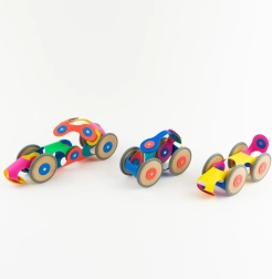 A CLIXO Wheel Creator rugalmas mágneses építőkészlet 6–10 éves gyerekeknek, amely fejleszti a kreativitást, a térérzékelést és a finommotorikát. A 24 pozícióban rögzíthető forgó mágneseknek köszönhetően a modellek stabil formát tartanak, és a dinamikus játékot is jól bírják. A fa kerekek életre keltik az alkotásaidat – az autóktól és vonatoktól a bájos állatkákig – mindezt a szivárvány ragyogó színeiben.