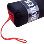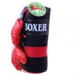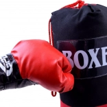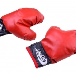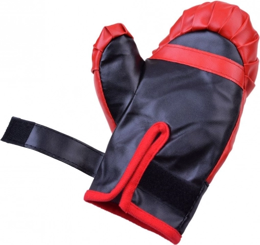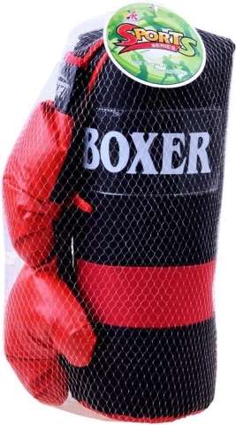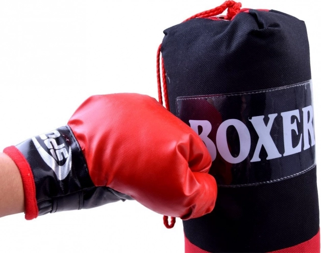 Teljes bokszkészlet otthoni edzéshez és szórakozáshoz. Tartalmaz 2 bokszkesztyűt és egy felakasztható bokszzsákot. A szintetikus bőrből készült, tépőzáras rögzítéssel ellátott kesztyűk kényelmes és biztonságos illeszkedést biztosítanak. A zsák erősen varrott, fém függesztőszemekkel és zsinórokkal felakasztható. Ideális a koordináció, a gyorsaság és a fürgeség fejlesztéséhez.
