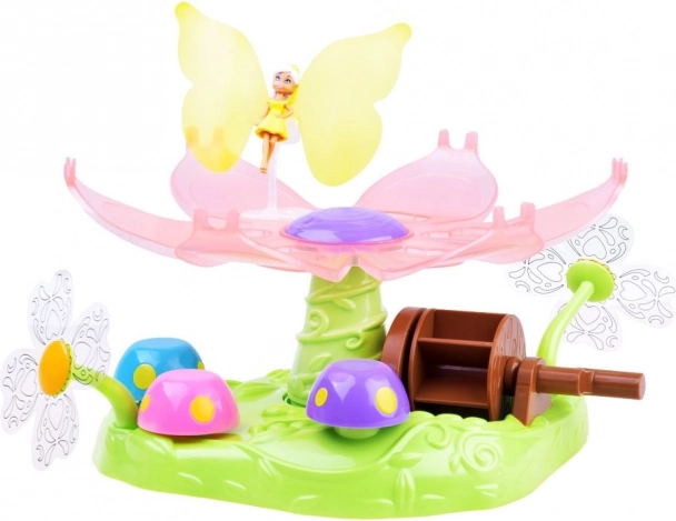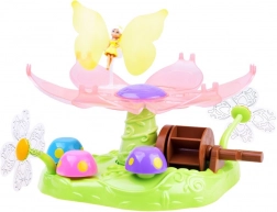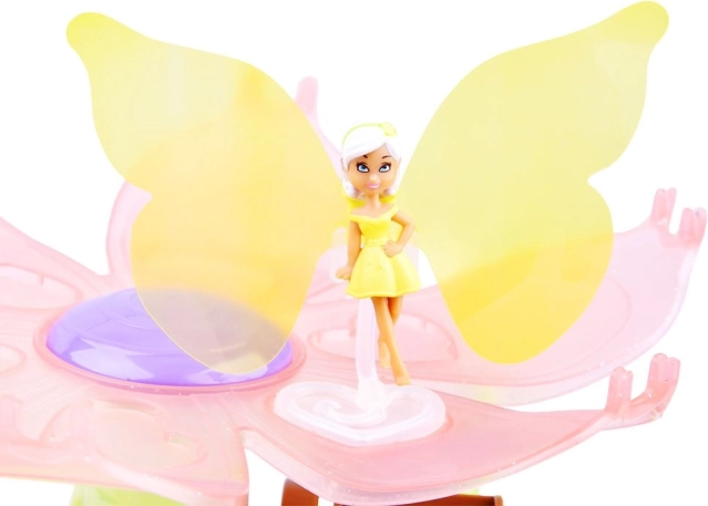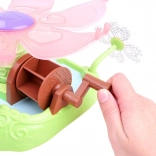 Lépjetek be a fantázia uralta világba. Helyezd a tündért a nagy virágra, tekerd meg a kényelmes kart, és figyeld, ahogy a virág forogni kezd, a tündér pedig kecsesen „táncra perdül”. Ez az interaktív játék a mozgás örömét nyújtja, és ösztönzi a képzelőerőt, valamint a saját történetek kitalálását.