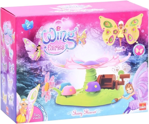 Színes figura látványos szárnyakkal és virágos talppal, amely hosszú játékra hív a WING FAIRIES mesés világában.