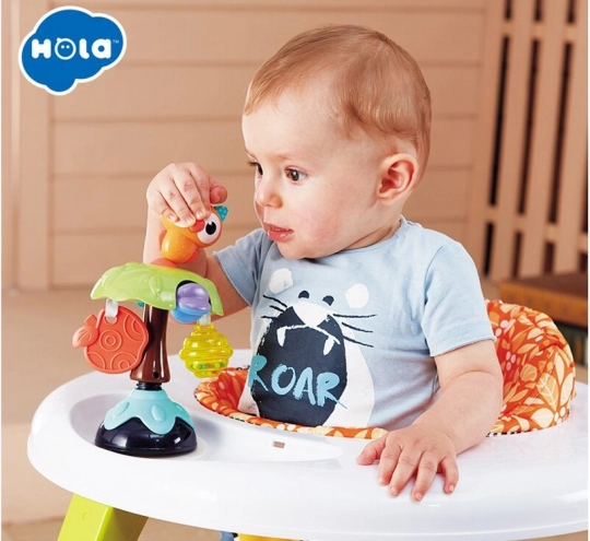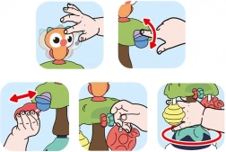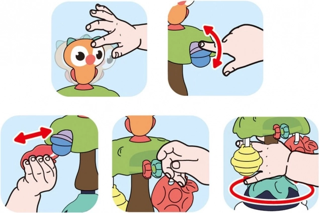 A játék színes és mozgatható részei segítik a gyermekek érzék- és motorikus fejlődését.