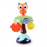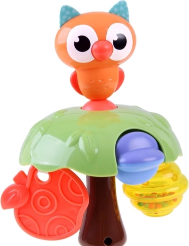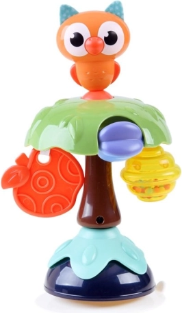 Varázslatos bagolymotívumos csörgő, amely kiváló minőségű műanyagból készült és tapadókoronggal rendelkezik, amely lehetővé teszi a könnyű rögzítést sima felületeken, például asztalok vagy székek. Ez a színes játék ideális társ étkezés vagy általános játék közben. A csörgő lehetőséget biztosít a gyermekeknek a játék megfigyelésére, forgatására és mozgatására, ami támogatja érzékeik és motorikus fejlődésüket.