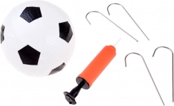 A csomag mindent tartalmaz az azonnali játékhoz: felfújható labda, kézi pumpa, négy cövek és praktikus tok.