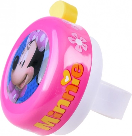 Stílusos gyerek kerékpárcsengő MINNIE MOUSE motívummal, amely biztosítja a biztonságos közlekedést és örömet szerez minden kiruccanásnál. Fémházzal a hosszú élettartamért, univerzális műanyag rögzítővel az egyszerű kormányra szereléshez és hangos, határozott hanggal, amely megbízhatóan figyelmezteti a környezetet.