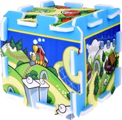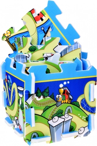 A reteszes széleknek köszönhetően az elemek könnyen összeállíthatók nagy szőnyeggé, kockává vagy egyszerű házikókká – szórakozás síkban és térben egyaránt.
