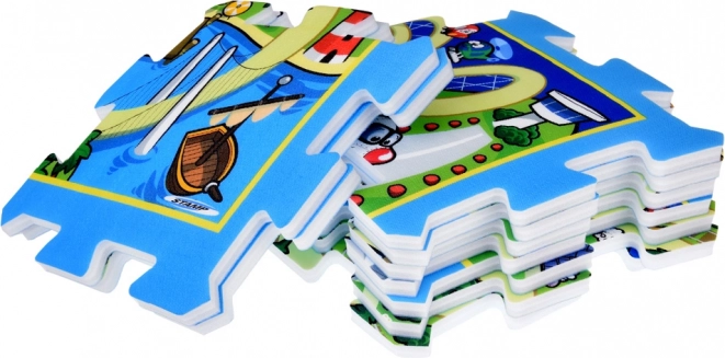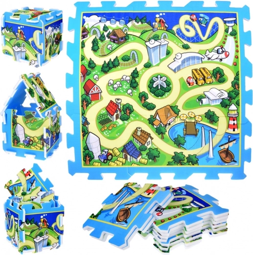 Ez a város- és útmintás hab szőnyeg/puzzle minden szobát vidám közlekedési zónává varázsol. A puha, mégis tartós habelemek rugalmas és biztonságos felületet teremtenek üléshez, mászáshoz és az első lépésekhez. A gyerekek kisautókkal járhatják az utakat, tanulhatják a színeket és formákat, és fejleszthetik fantáziájukat.