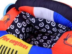 A bájos, tűzoltóautó ihlette gyerekfotel ideális első támasz az ülni tanuláshoz. A puha töltet és a finom felület kíméletes a gyermek bőréhez, míg a széles oldaltámaszok és a stabil háttámla segítenek a helyes testtartás és a biztonságérzet megőrzésében.