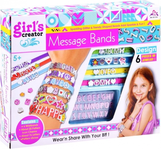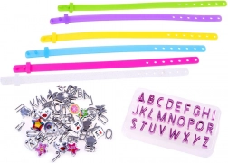 A kreatív készlet mindent tartalmaz, amire szükség van a szép és kreatív karkötők készítéséhez. 5 szalag különböző színekben, állítható csattal lehetővé teszi a különböző méretű csuklókhoz való igazítást. Műanyag betűk és díszek szabadon kombinálhatók nevek, szavak és minták létrehozásához – a lehetőségek végtelenek! Ez a szórakozás egyúttal fejleszti a kreativitást, kézügyességet és fantáziát.