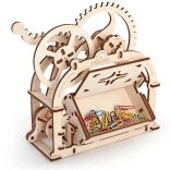 Fedezze fel a mechanika varázsát a UGEARS elegáns fa dobozával. Ez a mechanikus 3D modell ragasztó nélkül készül, és az oldalsó kar megnyomására automatikusan kinyílik, praktikus tárolóhellyé alakulva névjegykártyákhoz, gemkapcsokhoz vagy apró kincsekhez. A precíz kivitelezés, a finoman futó fogaskerekek és a szórakoztató összeszerelés a kezdőket és a műszaki rajongókat egyaránt lenyűgözi.