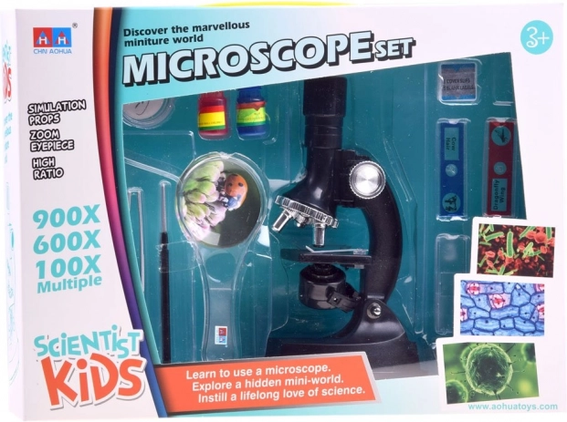 Ez a komplex készlet a kis tudósoknak lehetővé teszi, hogy meglássák azt, ami szabad szemmel láthatatlan. A három nagyítási szintnek köszönhetően 100×/600×/900× könnyedén megtekinthetik a kész preparátumokat és a saját mintáikat is. A robusztus műanyag-fém kombináció segít a stabil képen és a pontos fókuszáláson.