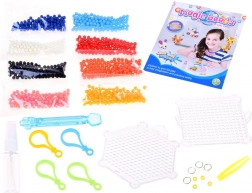 Csomag tartalma: mintákat tartalmazó könyv, 8 zacskó színes gyöngy, aplikátor, csipesz, vízipalack, medálok, 2 alaplap.