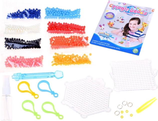 Ezzel a kreatív készlettel a Varázslatos gyöngyökkel a gyerekek csodálatos képeket és 3D figurákat készíthetnek. Tartalmaz sablonokat egyszerű mintákkal, amelyek megkönnyítik a kezdést. A gyöngyök elrendezése után elég vízzel permetezni, és hagyni megszáradni. Így a gyerekek szórakoztató módon alkothatnak eredeti projekteket, fejlesztik a kreativitásukat és a finom motorikájukat.