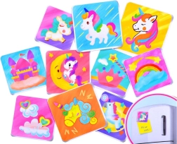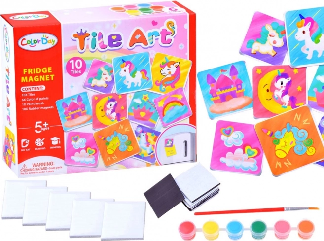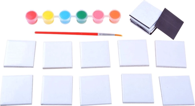 A szett minden szükséges komponenst tartalmaz tíz mágnes elkészítéséhez - a mozaikoktól kezdve a festékeken át az ecsetig. A gyerekek így azonnal belemerülhetnek az alkotás örömébe.