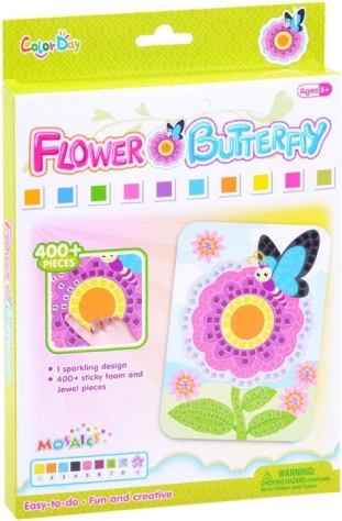 Mozaik virág pillangóval egy egyszerű, színes készlet gyerekeknek, akik szeretnek önállóan alkotni. Ez a termék fejleszti a plasztikus képességeket és örömet, szórakozást nyújt a gyerekeknek: