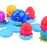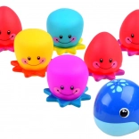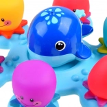 Ez a tetszetős fürdőszett a szórakozást és a tanulást ötvözi. A gyerekek nézhetik, ahogy a bálna úszik és spriccel, miközben a színes polipkák a víz felszínén vagy a sima felületeken kapaszkodnak. A szett fejleszti a kéz–szem koordinációt, támogatja az érzékelést, és a mindennapi higiéniát örömteli rituálévá alakítja.