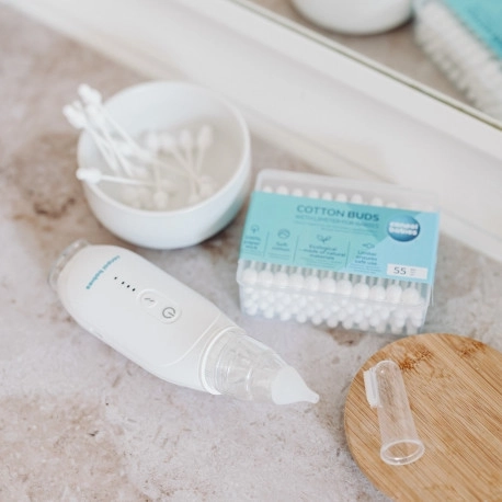 Tökéletes kiegészítő a babaápoláshoz, ráadásul 100% természetes! A speciális, anatómiai formájú vattapálcikák megakadályozzák a túl mély behelyezést a gyermek orrába vagy fülébe. A pálcika 100% papírból készült – környezetbarát alternatíva a műanyag pálcikákkal szemben. A vattás vég 100% pamutból készült. Az ütközővel ellátott pamut rész kialakítása biztonságos használatot biztosít. A csomagban 56 db található. Használati útmutató: A vattapálcikák végét benedvesítheti steril oldattal. Ne helyezze a pálcikát mélyen az orrba vagy a fülbe. Használat közben fokozott óvatossággal járjon el – ne feledje, hogy a gyermek tisztítás közben megmozdulhat. Figyelmeztetés! Fontos gyermeke biztonsága és egészsége szempontjából! Minden használat előtt ellenőrizze a termék minőségét. A termék nem játék. Tartsa gyermekektől elzárva. A pálcikák megfelelnek az alábbi követelményeknek: Az Európai Parlament és a Tanács 2001/95/EK irányelve az általános termékbiztonságról.