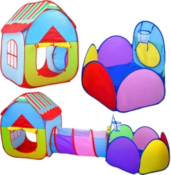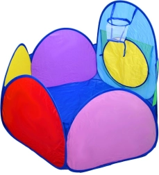 A színes, 3 az 1-ben gyerek sátorkészlet egyesíti a házikót, az alagutat és a karámot labdakosárral, így végtelen szórakozást nyújt otthon és a kertben. Könnyű szerkezet, gyors felállítás és összecsukás, légáteresztő ablakok és összecsukható kialakítás teszik ezt a szettet ideális játéktérré bújócskához, kúszáshoz és labdadobáláshoz.