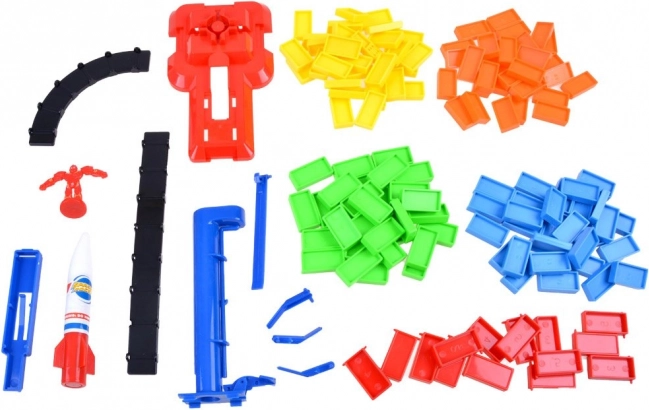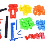 A színes műanyag elemek tartós anyagból készültek, amely ösztönzi az ismételt játékot és az alkotókedvet.