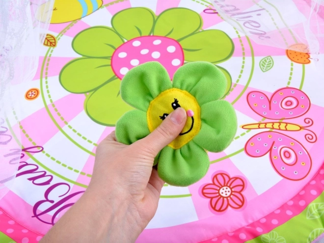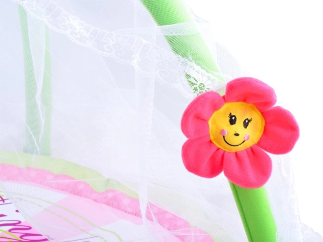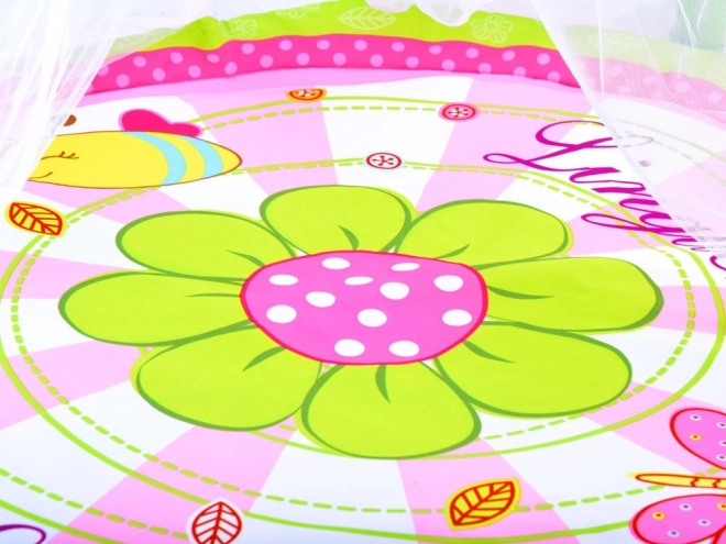 A gyermek játszószőnyeg úgy lett tervezve, hogy biztonságos és kényelmes helyet teremtsen gyermeke számára. Élénk színei és puha anyaga ideálisak a mindennapos játékhoz vagy pihenéshez. A szőnyeg virágokkal és szúnyoghálóval felszerelt ívekkel rendelkezik, amelyek védelmet nyújtanak a rovarok ellen, és növelik a gyermekek számára vonzerőt.