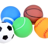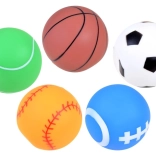 A mókás, öt darabos gumí sípoló labdakészlet minden gyermeket felvidít. Mindegyik labda egy kedvelt sportág dizájnját viseli, és megnyomásra vidám, sípoló hangot ad. Ideális fürdőjátékhoz, a kertben való játékhoz és dobás- és elkapásgyakorláshoz is. A puha gumi kellemes fogású, a kompakt, kb. 5 cm-es méret pedig a kisebb gyermekek kezébe is jól illik.