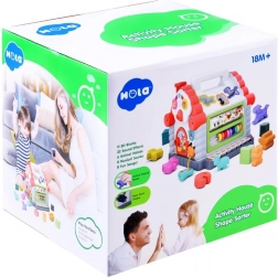 Színes, interaktív házikó 18 hónapos kortól, amely ötvözi a formaválogatót, a valósághű állathangokat, a vidám dallamokat, a mini zongorát, a számlálót és sok más tevékenységet. Fejleszti a finommotorikát, a logikus gondolkodást, a formák és színek felismerését, valamint a zenei érzéket.