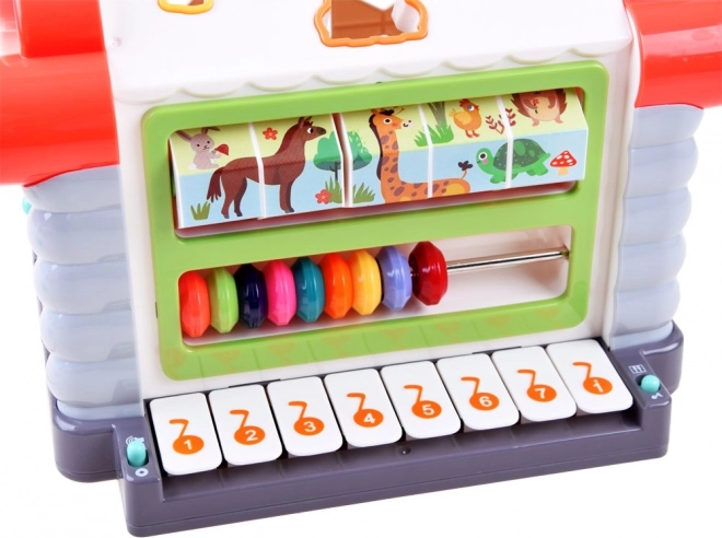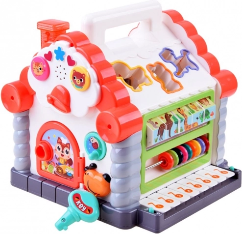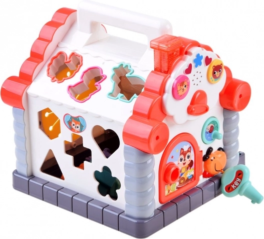 Ez a felfedező házikó minőségi, tartós műanyagból készült, vonzó színekben. Gazdag interaktív funkciókat kínál: a megfelelő elem behelyezésekor megszólal a hozzátartozó állathang, a minizongora lejátsza a hangsort és 7 közkedvelt dallamot, a számláló pedig támogatja az első számolást. A kulcs és az ajtók használata közben a gyerekek finommotorikájukat és szem-kéz koordinációjukat is fejlesztik.