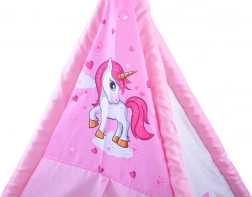 Varázslatos menedéket teremthet a gyerekeknek játékhoz, olvasáshoz és pihenéshez. A rózsaszín egyszarvús teepee sátor a bájos megjelenést praktikus kivitellel ötvözi – a textil borítás könnyen tisztítható, a szerkezet pedig gyorsan összecsukható és felállítható. A sátor elég tágas a kedvenc játékoknak és párnáknak, ugyanakkor könnyű, így egyszerűen mozgatható.