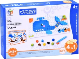 A készlet 248+ színes kockát tartalmaz a változatos mozaikokhoz. A gyerekek készíthetnek mintákat a sablonok alapján (pl. állatok vagy óceáni jelenetek), vagy kitalálhatnak saját képeket.
