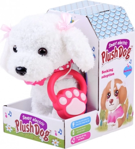 Az interaktív plüss kiskutya valóra vált álom azoknak a gyerekeknek, akik saját kis kedvencre vágynak. Bekapcsolás után a simogatásra örömteli hangokkal és ugatással reagál, előre sétál és csóválja a farkát. A póráz csatlakoztatása után a gombbal aktiválható a séta és a hangeffektek, így a játék még szórakoztatóbb.