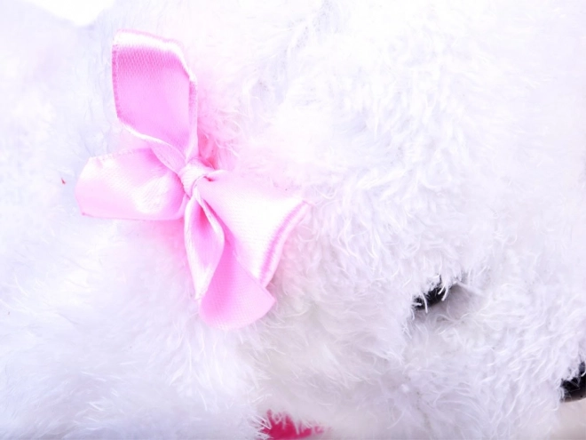 Puha és selymes anyagának köszönhetően kiválóan alkalmas ölelgetésre. A színes nyakörv és a masnik bájos megjelenést kölcsönöznek a játéknak, amit a gyerekek gyorsan megszeretnek. Ideális otthoni játékhoz, sík felületeken.