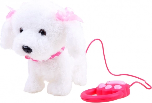 Csatlakoztassa a pórázt, és a gomb segítségével aktiválja a sétát és az ugatást. A gyerekek egy igazi kedvenchez hasonlóan vezethetik a kiskutyát sík felületeken.