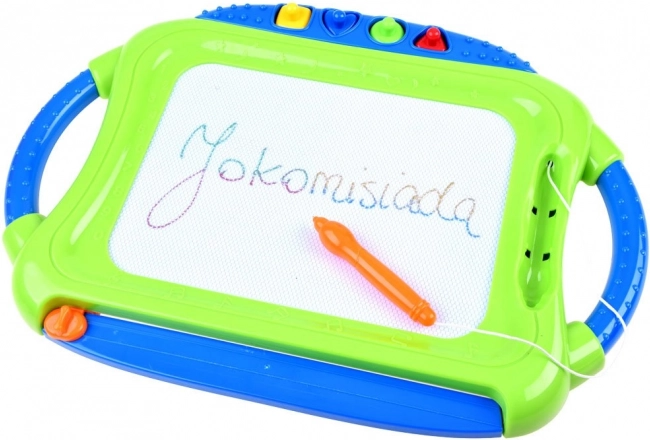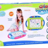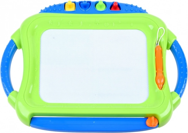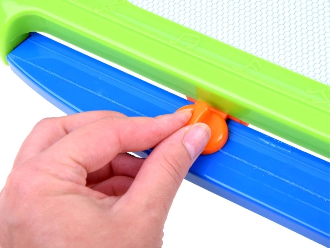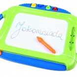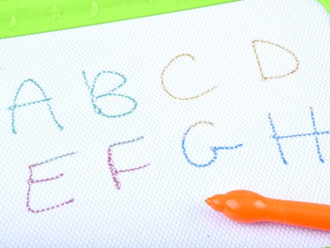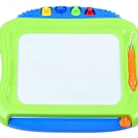 Ez a színes mágneses tábla lehetővé teszi a gyerekeknek, hogy papír és ceruzák nélkül rajzoljanak, írjanak és formákat nyomdázzanak. A négyszínű mező a rajzolás helyétől függően változik, így a képek élénkek és figyelemfelkeltők. Mindent könnyedén letörölhet a csúszkás törlővel – és kezdődhet az új alkotás.