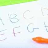 A tábla könnyű, jól kézbe illik, nagyvonalú rajzfelülete pedig bőséges teret ad a fantáziának. A szív, háromszög, négyzet és kör alakú pecsétek segítik a gyerekeket a színek és formák felismerésében, valamint a finommotorika fejlesztésében.