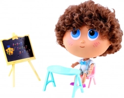 A bájos Tymek tanár baba az iskolás szerepjátékhoz rengeteg fantáziát és szórakozást nyújt a gyerekeknek. A csomagban tábla, asztal és szék található. A baba mozgatható ízületekkel és 360°-ban forgatható fejjel rendelkezik, nagy kék szemekkel, szeplőkkel és göndör hajjal. Remek szerepjátékhoz és a kreativitás fejlesztéséhez.