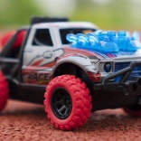 Fedezd fel a teljes gázzal járó szórakozást ezzel a fém 4x4 terepes kisautóval. A felhúzható mechanizmus gyors rajtot biztosít, a markáns kerekek megbirkóznak az egyenetlenségekkel, a fény- és hangeffektek pedig kiemelik minden manővert. Remek választás az autókat és az akciójátékokat kedvelő kicsiknek.