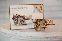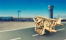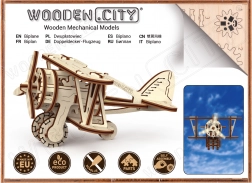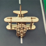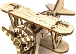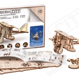 A fa mechanikus építőkészlet kétfedelű repülő formájában egyedi dizájnt és meglepő részleteket kínál. Modellezői pontossággal repít a légi kalandok világába az olyan repülés úttörőinek nyomában, mint Antoine de Saint-Exupéry. A modellt gumiszalagok hajtják állítható gyorsulással, amelyek megpörgetik a légcsavart és lehetővé teszik, hogy a repülő felgyorsuljon sík felületen.