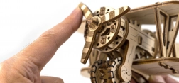 A készlet minőségi nyír rétegelt lemezből készül, és ragasztó vagy szerszám használata nélkül állítható össze. Az összeállított modell mérete kb. 16,1 x 14 x 8,8 cm. Remek ajándék repülőgép-rajongóknak, és garantáltan órákon át tartó szórakozást, valamint a mechanikus áttételek és fogaskerekek megismerését nyújtja.