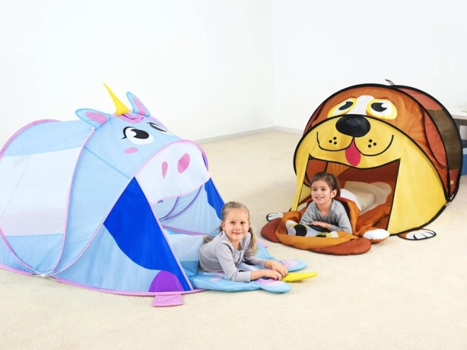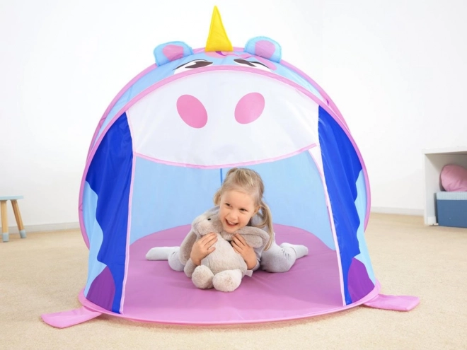 Fedezd fel a képzelet játékának varázsát az unikornis alakú játszósátorral, amely vidám színeivel és barátságos dizájnjával elbűvöli a gyerekeket. A sátor pillanatok alatt magától feláll, így készen áll a mókára otthon, a teraszon, a kertben vagy a vízparton. A strapabíró poliészter szövet és a hálós oldalpanelek jó szellőzést és átláthatóságot biztosítanak a szülők számára.