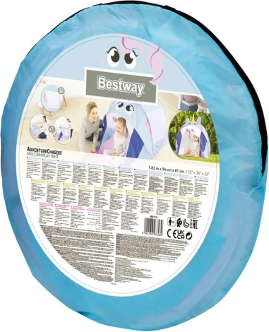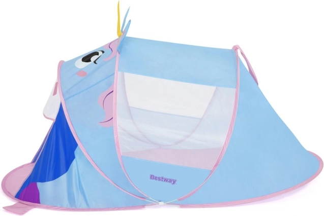 A BESTWAY bájos, unikornis alakú gyerek pop‑up sátra mesés birodalommá varázsolja a szobát, a kertet vagy akár a strandot. A gyors önfelálló mechanizmusnak, a könnyű anyagnak és a hálós ablakoknak köszönhetően ideális kreatív játékhoz és pihenéshez is. A padlózsák tiszta, kényelmes közeget biztosít, a 182 × 96 × 81 cm-es méret pedig bőséges helyet ad a játékhoz és a rövid szusszanáshoz.