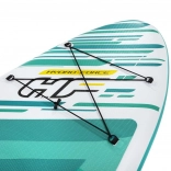 A BESTWAY HUAKA'I felfújható SUP univerzális, all‑round paddleboard nyugodt vizekre és kisebb hullámokra. A merev Drop Stitch mag és a háromrétegű Tritech laminát kiváló stabilitást, merevséget és hosszú élettartamot kínál. A csúszásgátló fedélzet biztos állást ad, az első cargo bungee pedig biztonságosan rögzíti a holmikat.