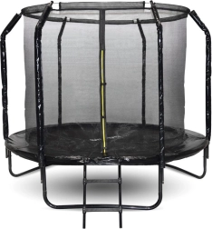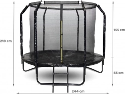 A 244 cm átmérőjű SKYFLYER trambulin kiváló választás családok számára, akik támogatni szeretnék a gyerekek és felnőttek aktív mozgását. A robusztus, U alakú lábakkal szerelt konstrukció, az erős rugók és a sűrű védőháló stabil peremmerevítéssel maximális biztonságot és stabilitást nyújt ugrálás közben.