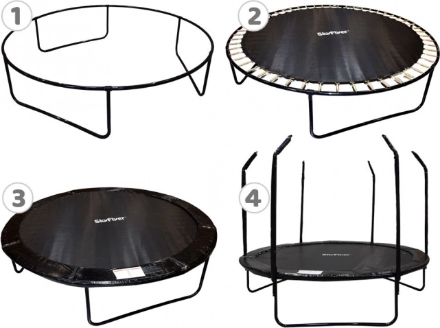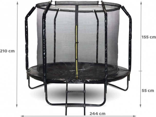 - trambulint fekete festett vázzal és a rugókat fedő védő peremmel,