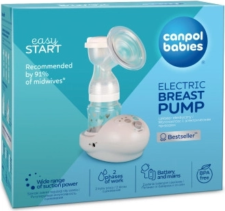 Praktikus és csendes Canpol babies EasyStart elektromos mellszívó kétfázisú szívási ritmussal, 3 üzemmóddal és 3 szívóerő-szinttel, amely kíméletesen támogatja a laktációt, és kényelmes fejést biztosít a nap bármely szakában, akár éjszaka is. Hálózatról és elemmel/akkumulátorral is működik, kényelmes szilikon tölcsérrel rendelkezik, és kompatibilis minden Canpol babies cumisüveggel. Minden anyag BPA-mentes.