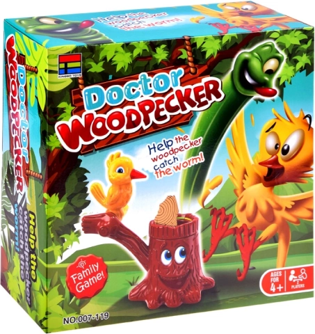 A Doktor Harkály – beteg fa játék ideális közös estékhez és gyerekzsúrokhoz. A játékosok felváltva forgatják a forgó rulettet, a papírgyűrűt a kihúzott színhez igazítják, majd a harkállyal „kopogtatnak” a papíron. A cél minél több találatot elérni, és elsőként úgy átszakítani a papírt, hogy a fából kiugorjon a rugós kukac.